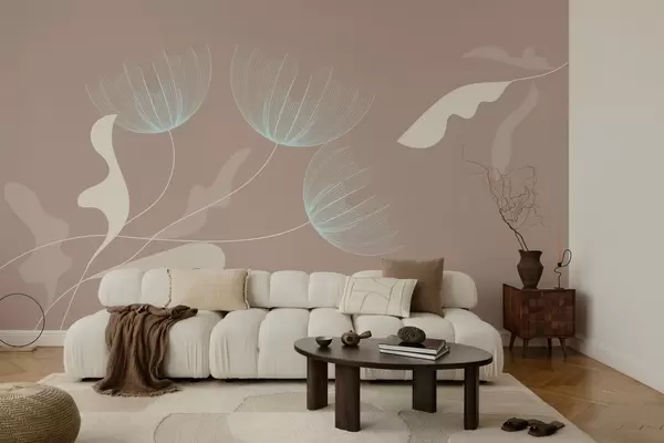 Fotomurales elegantes flores minimalistas en tonos blancos y azules sobre fondo moca Nr. w03763v3