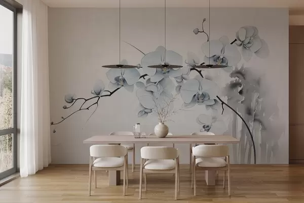 murales de pared Orquídeas en acuarela de estilo japonés sobre fondo claro w03795