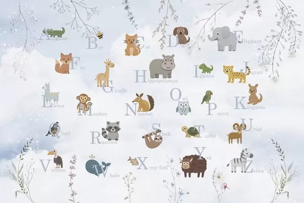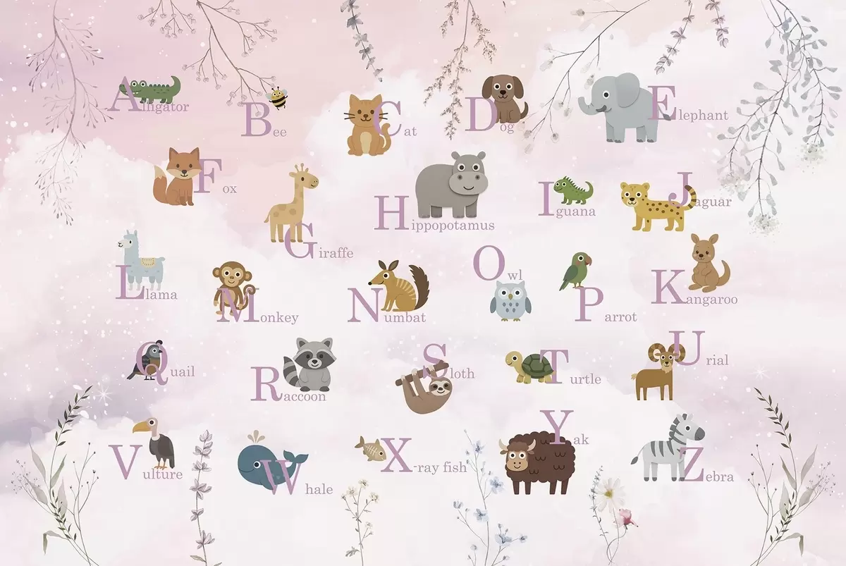 Fotomurales Alfabeto con letras rosas, plantas y cielo Nr. w03809
