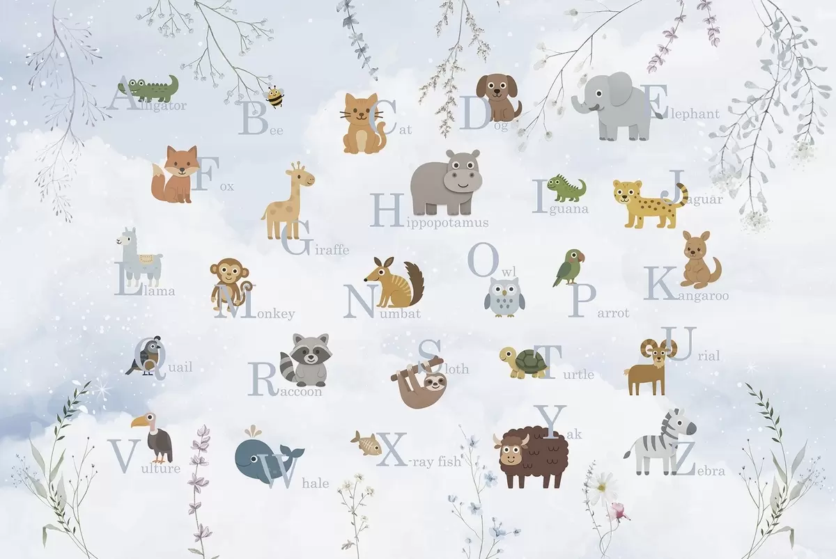 Fotomurales Alfabeto con letras azules, plantas y cielo Nr. w03809v1