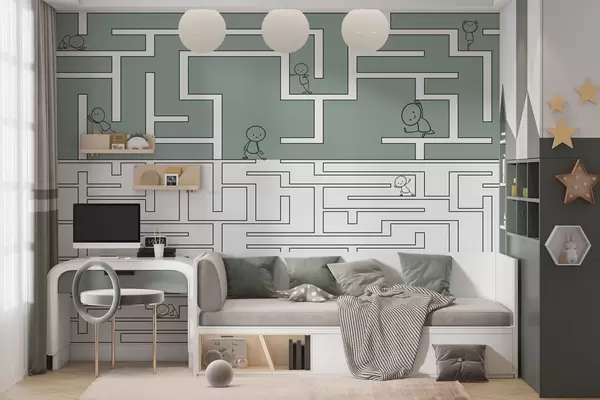 Fotomurales Laberinto en verde y blanco Nr. w03873v3
