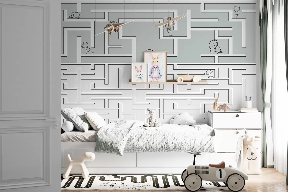 Fotomurales Laberinto en verde claro y blanco Nr. w03873v4