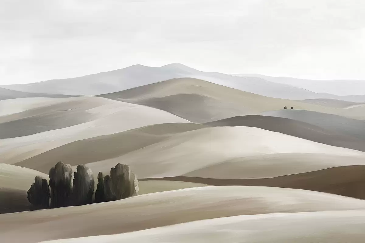 Fotomurales Paisajes con árboles, Toscana, colores beige y gris, estilo óleo Nr. w03880v1