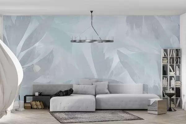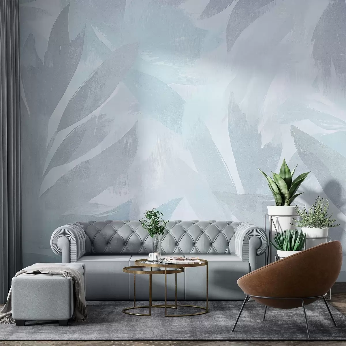 Fotomurales Hojas tropicales, florales, palmeras, estilo pastel, colores azules Nr. w03881v2