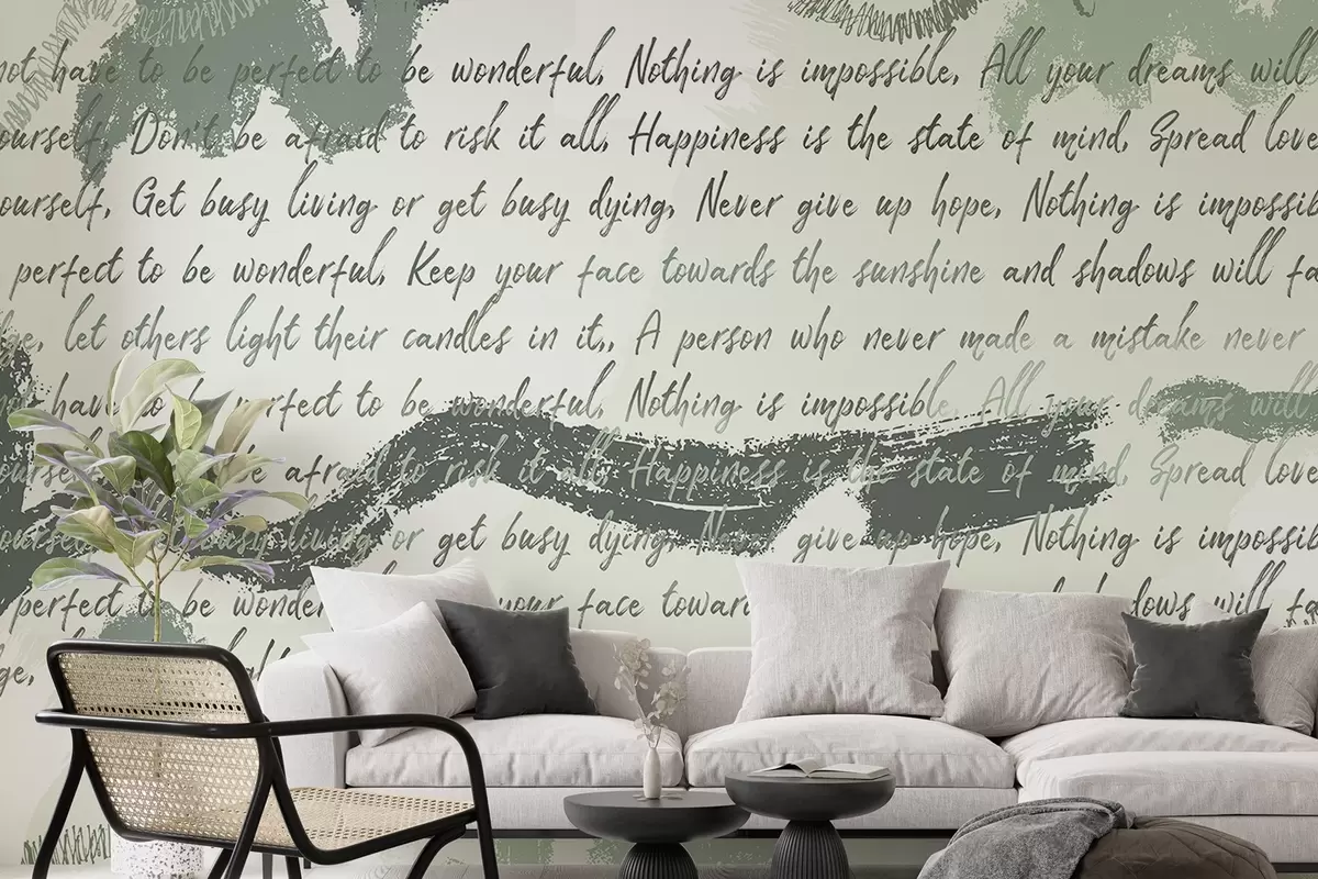 Fotomurales Diseño con citas inspiradoras, abstracción, colores verdes Nr. w03909v1