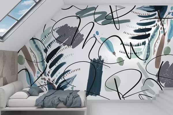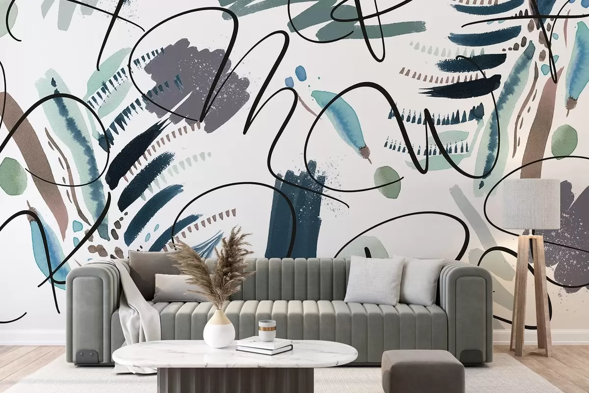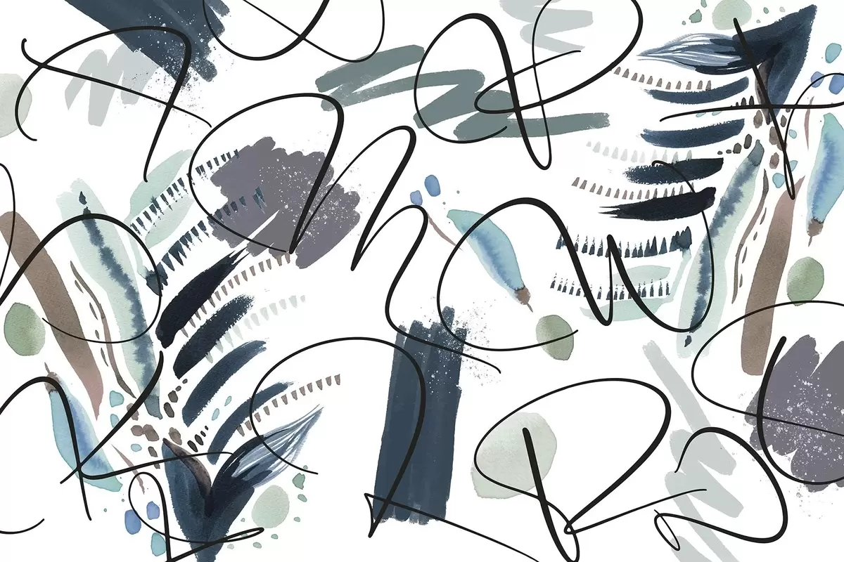 Fotomurales Letras de tinta, caligrafía, pinceladas, colores azules, abstracción Nr. w03912v2