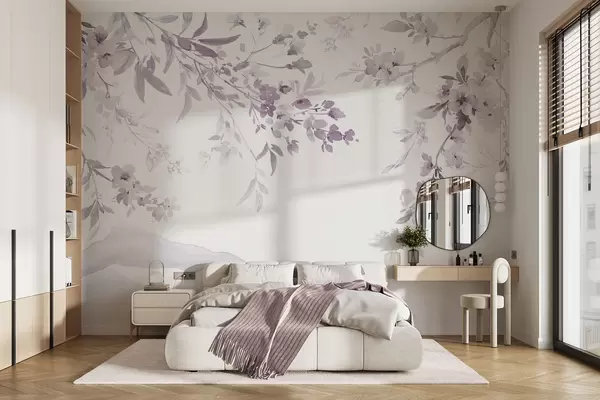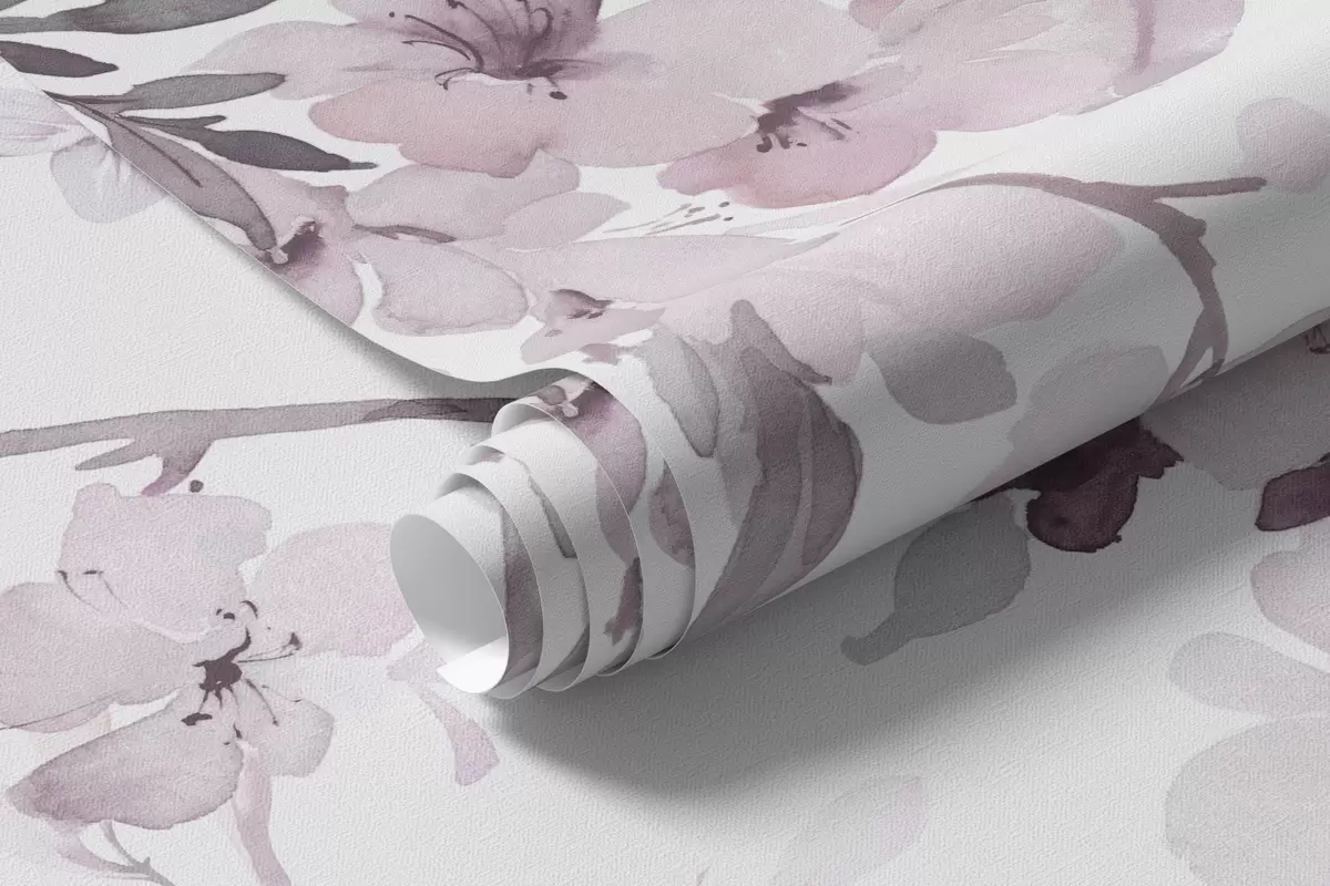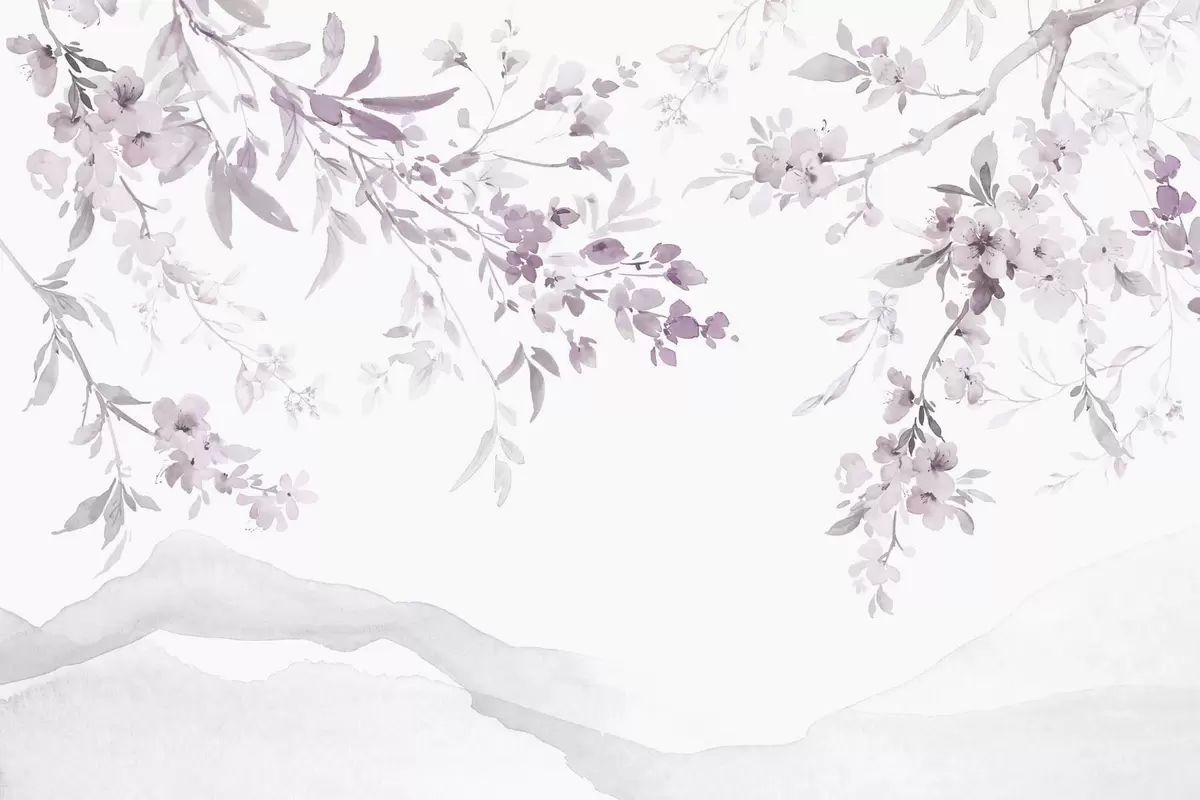 Fotomurales Ramas floridas, imitación de acuarela, tonos púrpura-rosa Nr. w03935v1