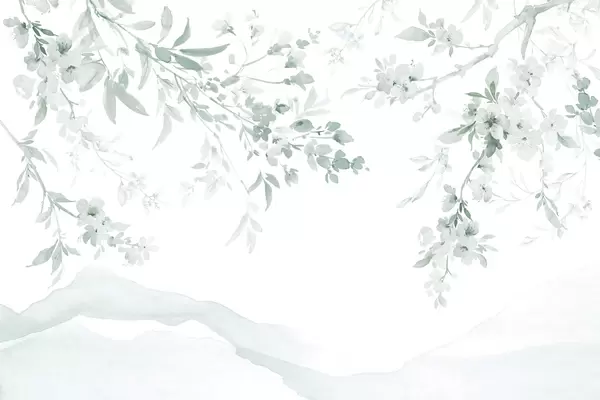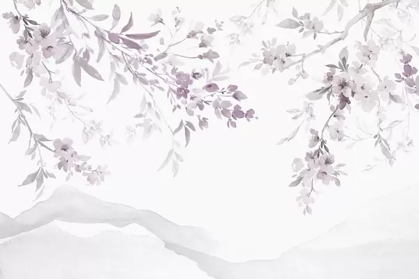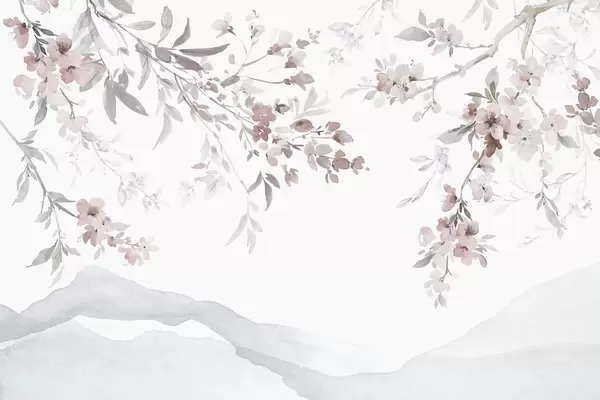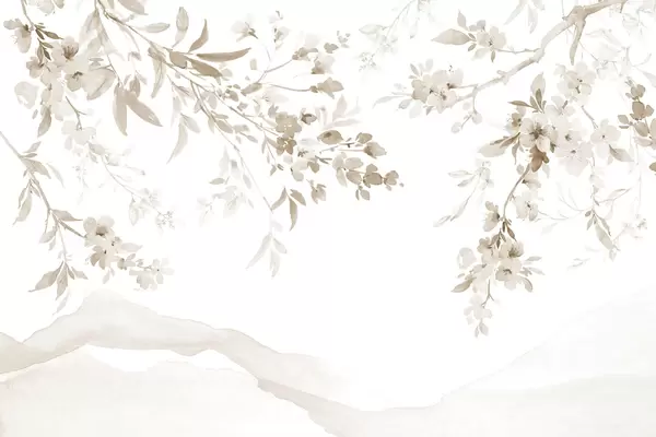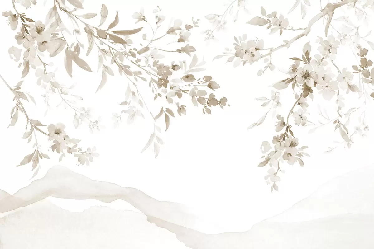 Fotomurales Ramas floridas, imitación de acuarela, tonos beige Nr. w03935v2