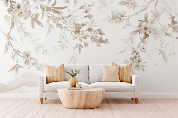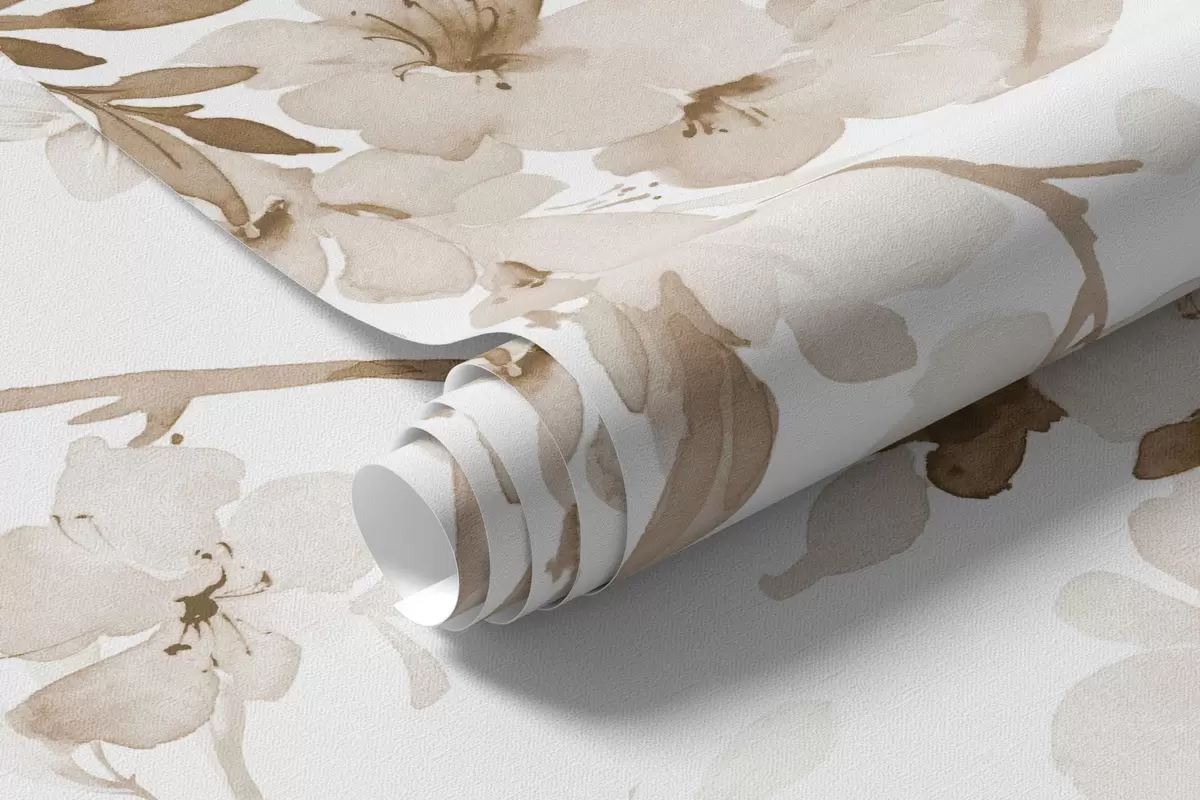 murales de pared Ramas floridas, imitación de acuarela, tonos beige w03935v2