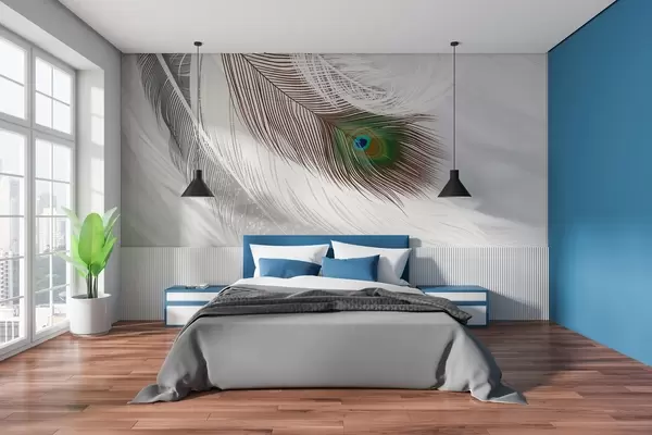 Fotomurales una gran pluma de pavo real entre las plumas Nr. w03961
