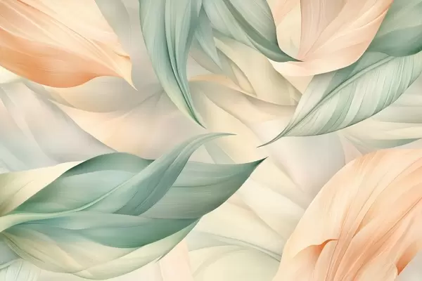 Fotomurales exóticas hojas tropicales en delicados tonos melocotón y verde Nr. w03962