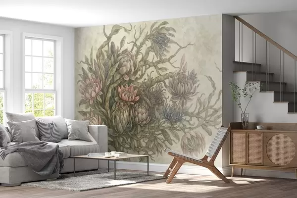 Se puede limpiar suavemente con una esponja suave. Los murales de pared con recubrimiento de barniz pueden limpiarse con agua.
