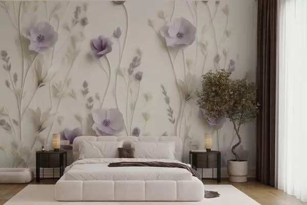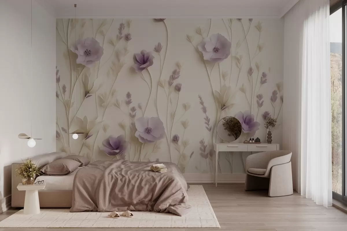 Fotomurales Delicadas flores lilas sobre fondo crema Nr. w03993