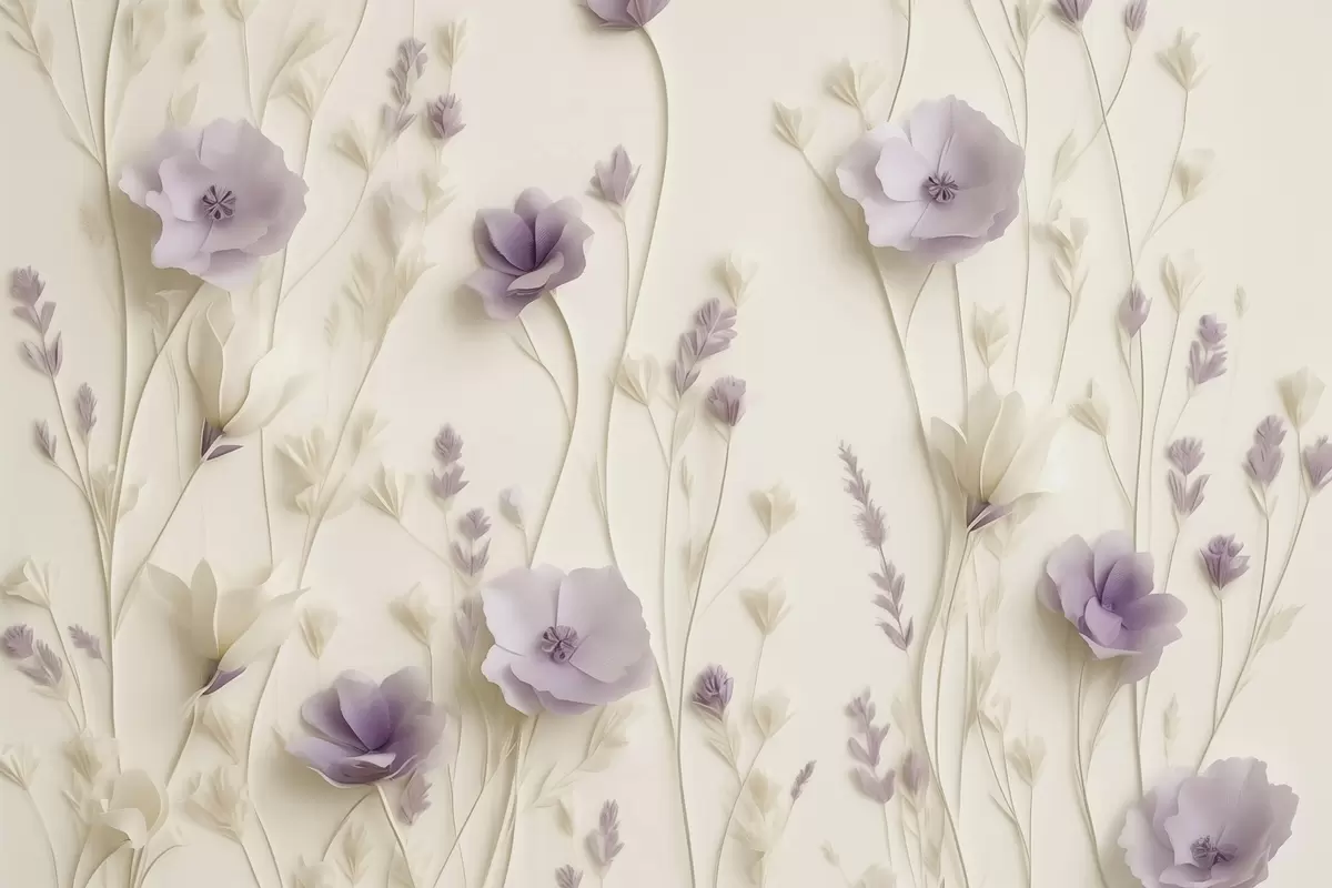 Fotomurales Delicadas flores lilas sobre fondo crema Nr. w03993