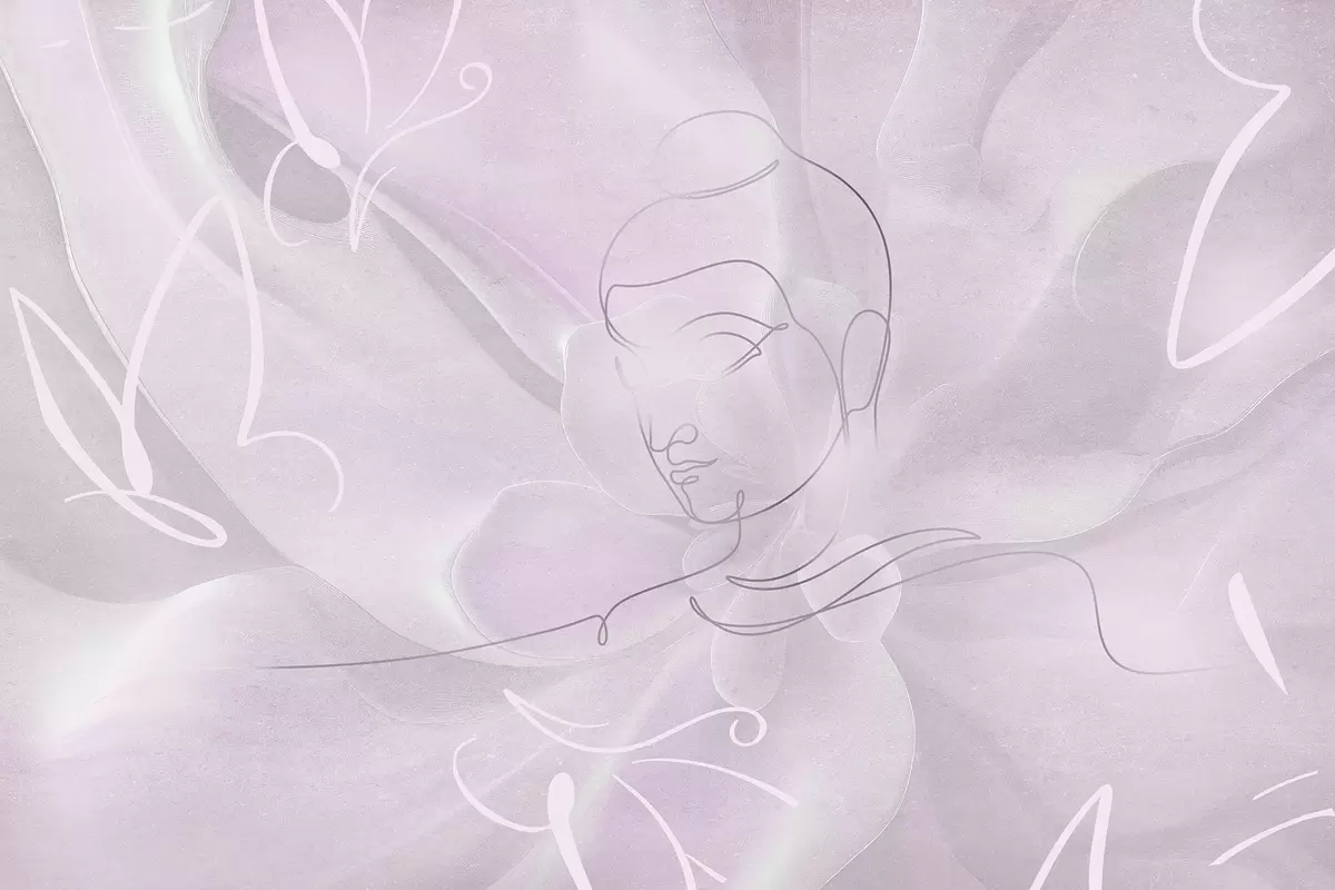 Fotomurales Abstracción floral con dibujo lineal de Buda, colores rosas Nr. w04004v2