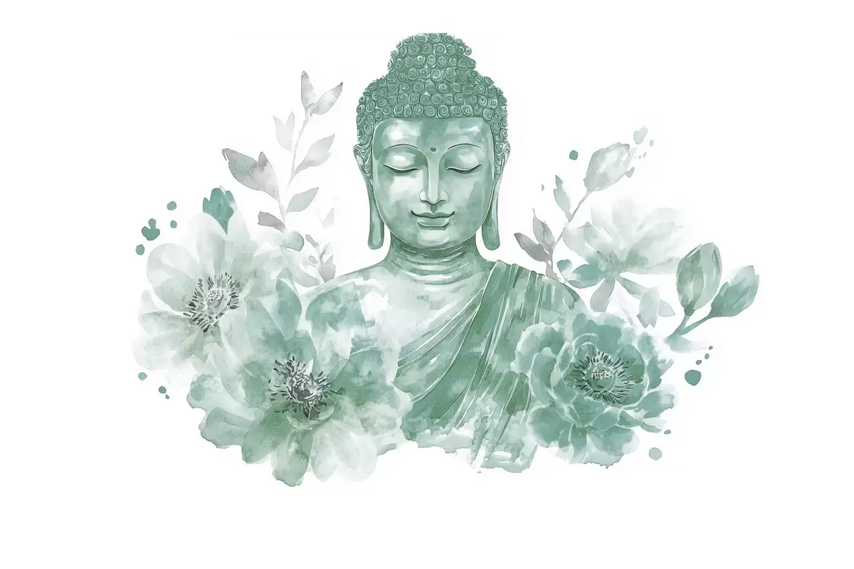 Fotomurales Buda de acuarela con flores, espiritual, paleta de color verde Nr. w04005v3