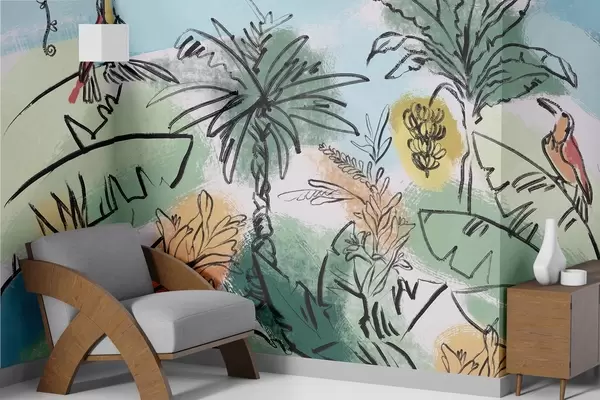 Se puede limpiar suavemente con una esponja suave. Los murales de pared con recubrimiento de barniz pueden limpiarse con agua.