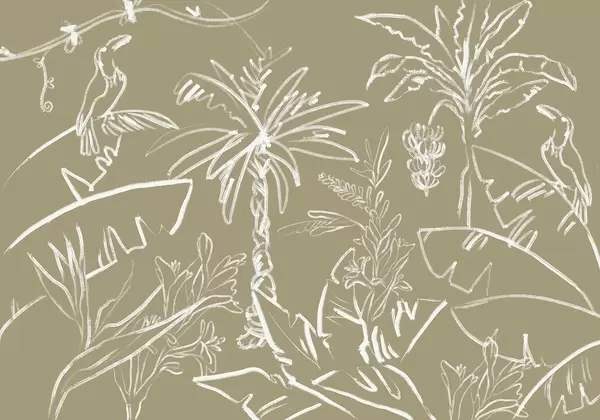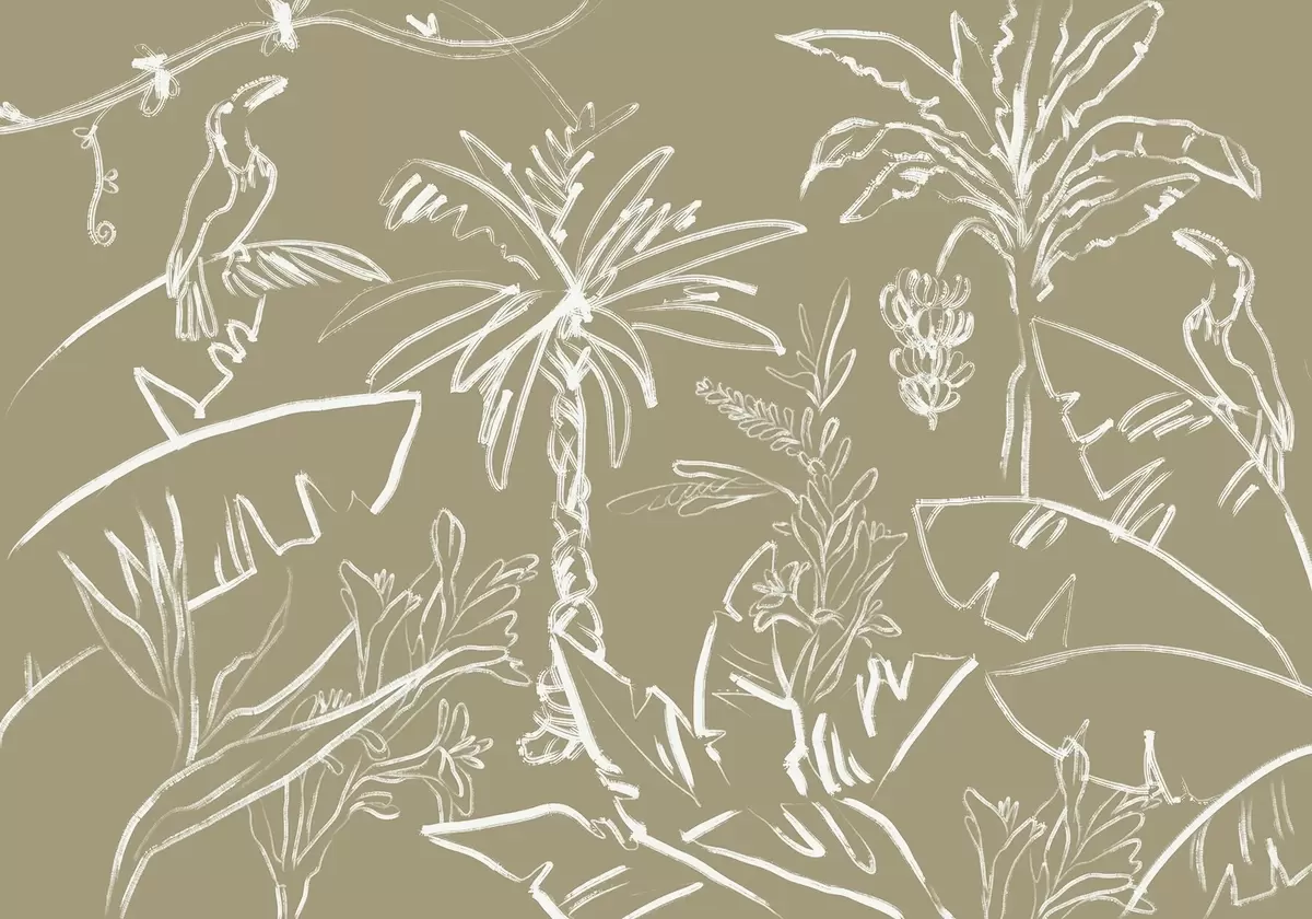 Fotomurales Patrón tropical sobre fondo marrón oliva, palmeras, plátanos Nr. w04020v3