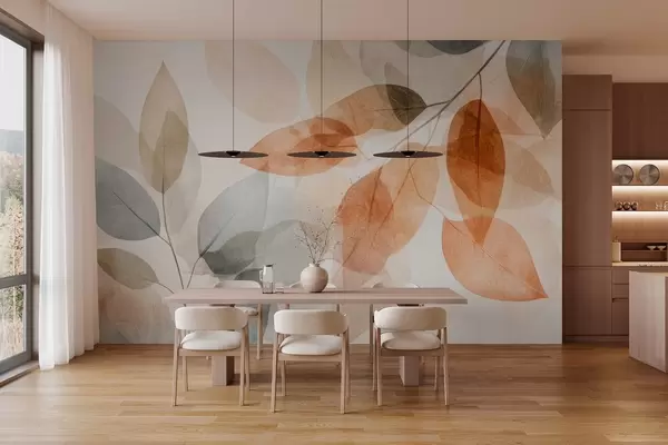 Fotomurales hojas estilo acuarela en tonos sepia y grises Nr. w04024