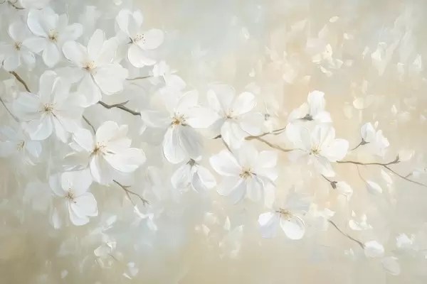 Fotomurales delicada rama de albaricoque en flor en el estilo de la pintura al óleo en colores pastel Nr. w04029
