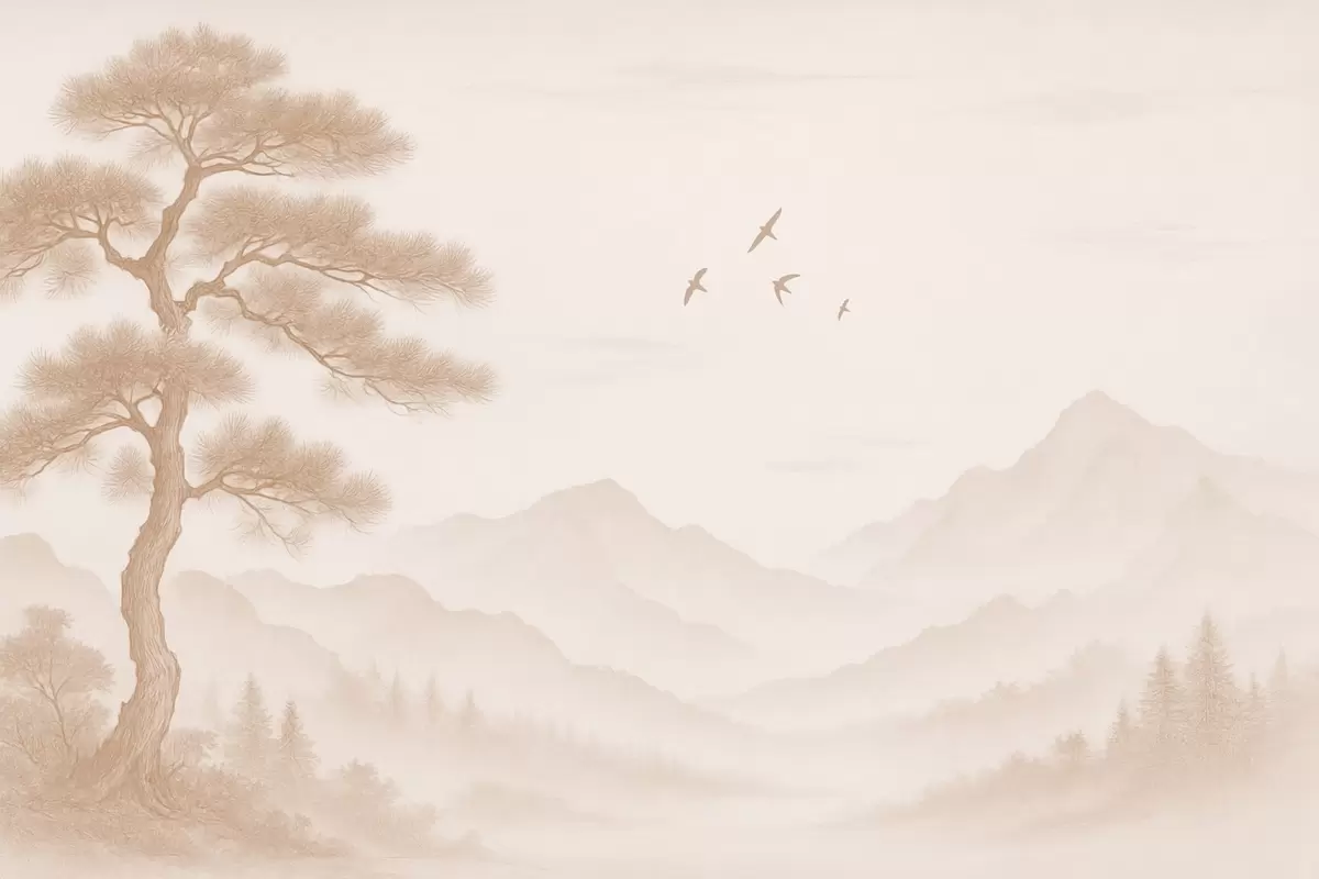 Fotomurales panorama de colinas con un gran árbol en tonos moca Nr. w04033v1