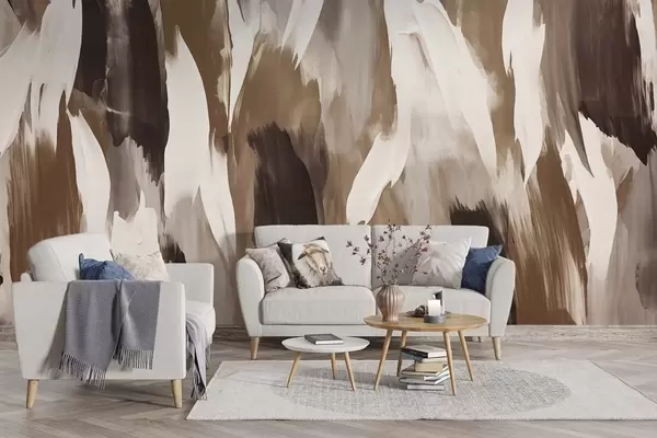 Fotomurales textura abstracta de cálidos tonos terrosos -crema, caramelo y café- mezclados en pinceladas fluidas llenas de profundidad y suavidad Nr. w04035v2