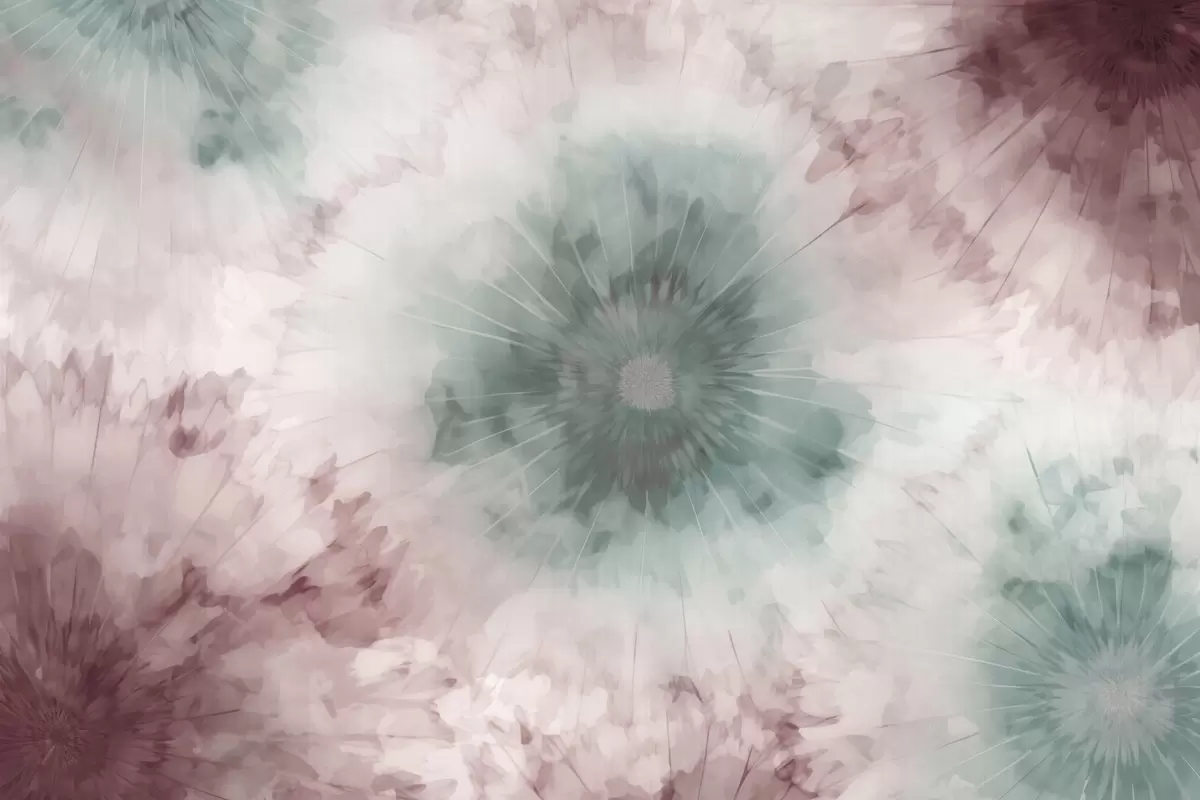 Fotomurales Motivo radial de acuarela que mezcla verdes brumosos y rosas polvorientos, evocando la suavidad del rocío matutino y el primer soplo del día Nr. w04036v2