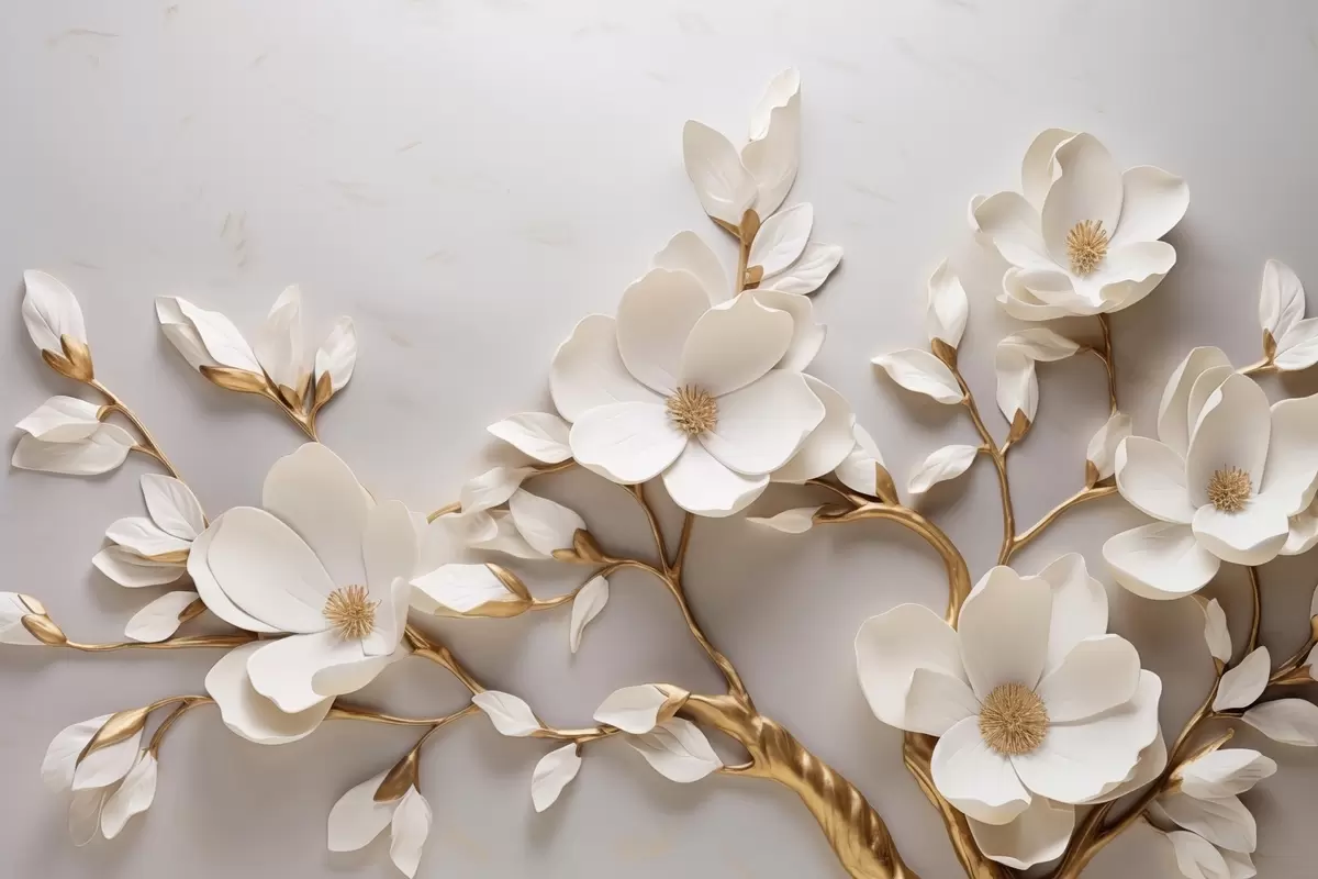 Fotomurales Elegantes flores en relieve con tallos de tonos suaves forman una escena tranquila y armoniosa Nr. w04039