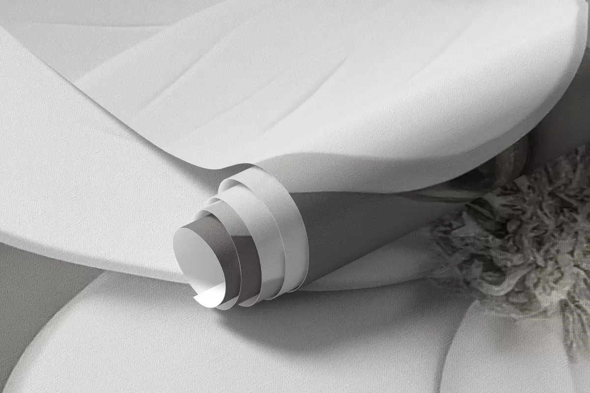 Fotomurales Rama floral dimensional en blanco puro y tonos neutros Nr. w04039v2