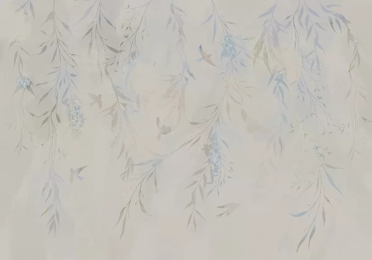 Fotomurales Ramas con hojas colgantes y pájaros Nr. w04053