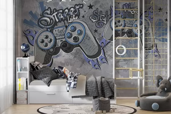 Fotomurales Consolas estilo street art en la pared grunge Nr. w04054