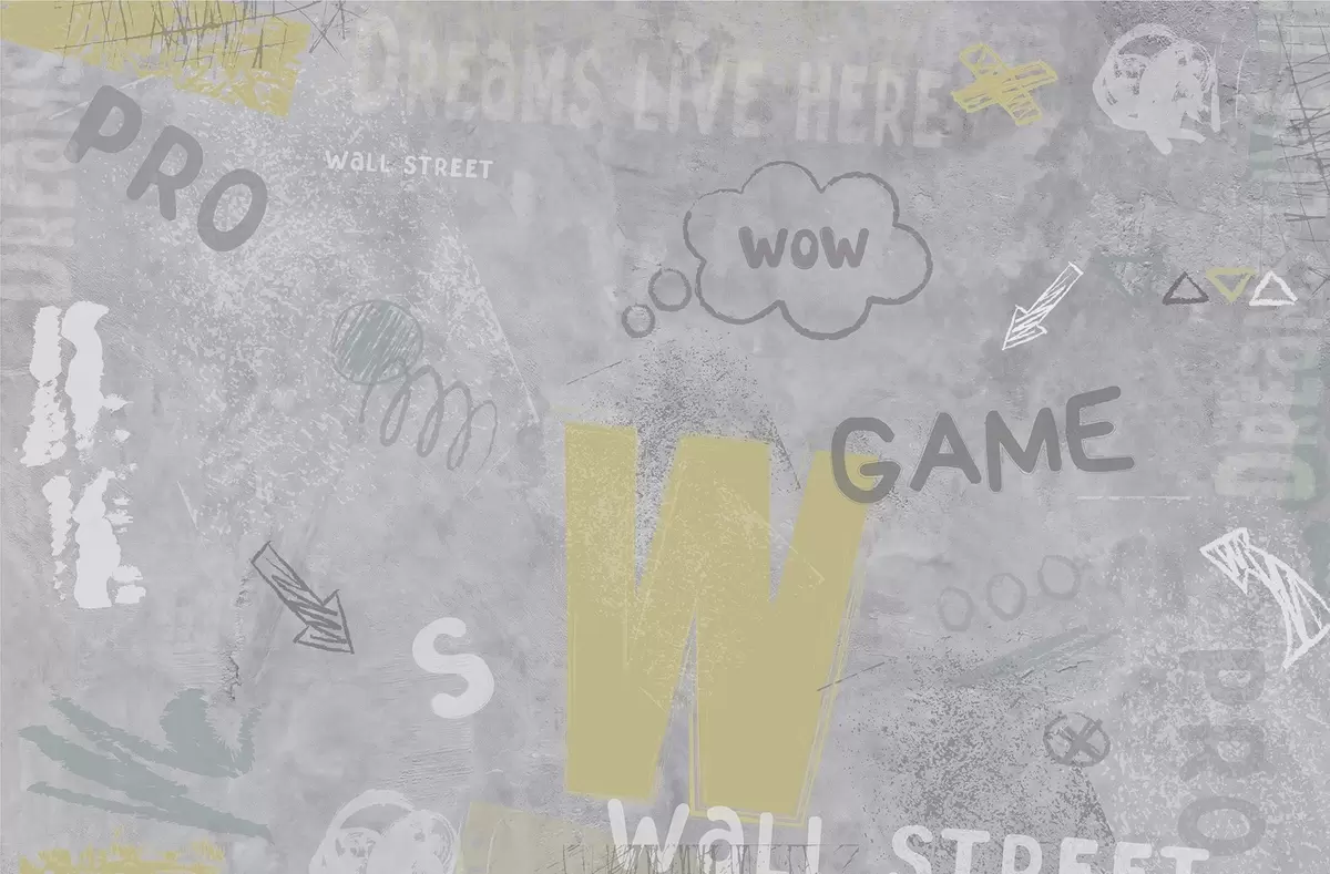 Fotomurales Diseño en estilo street art con inscripciones en color amarillo sobre fondo de muro de hormigón Nr. w04056