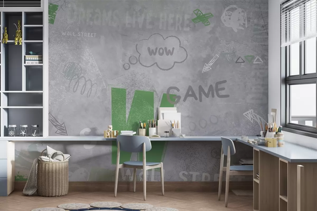 Fotomurales Diseño de arte callejero con letras de color verde en el fondo de la pared de hormigón Nr. w04056v2