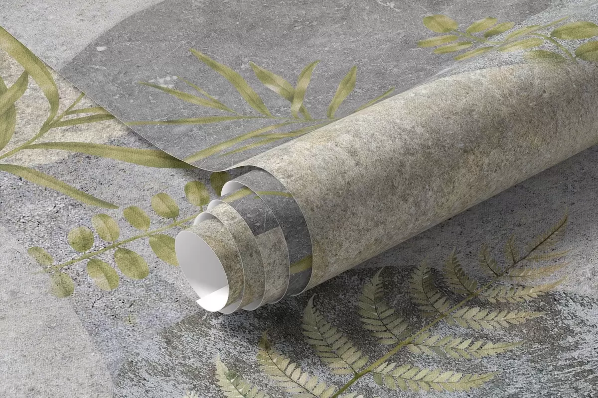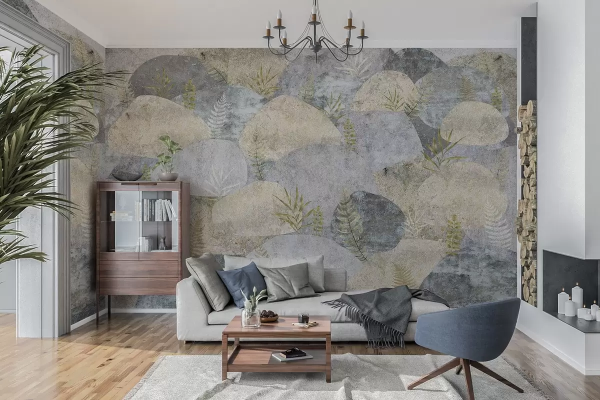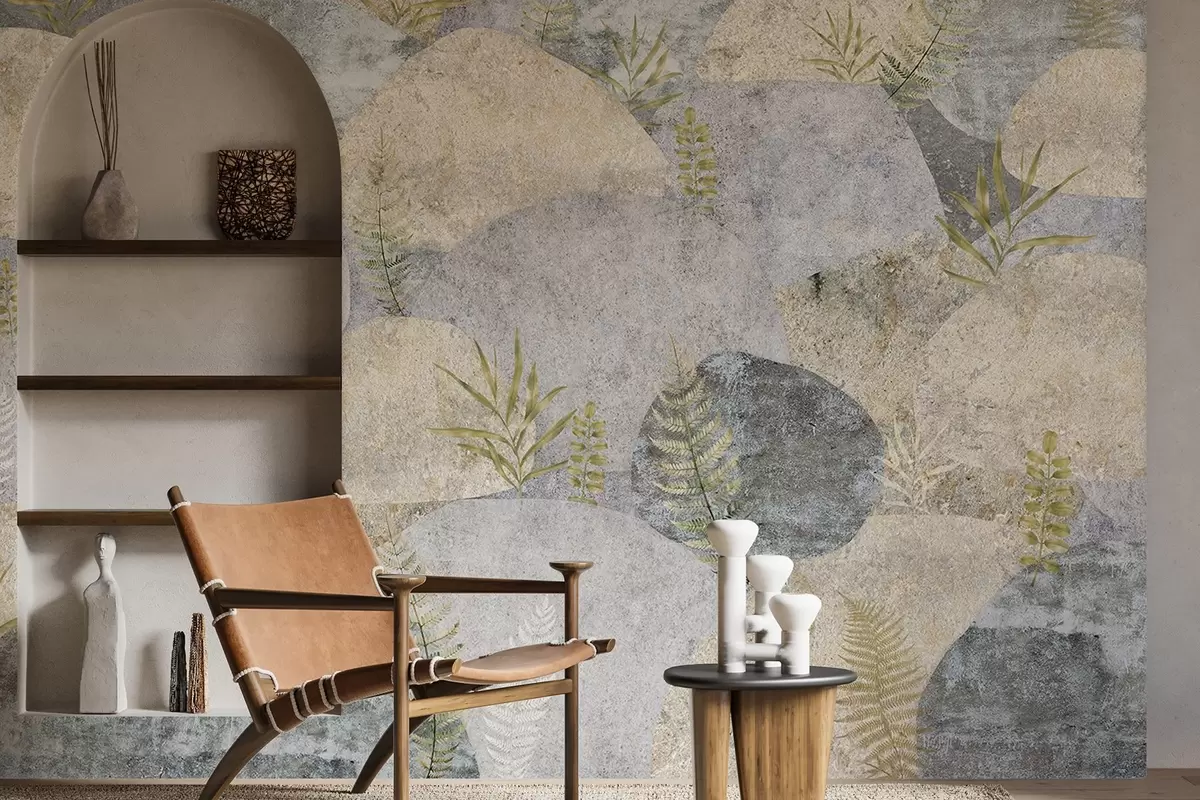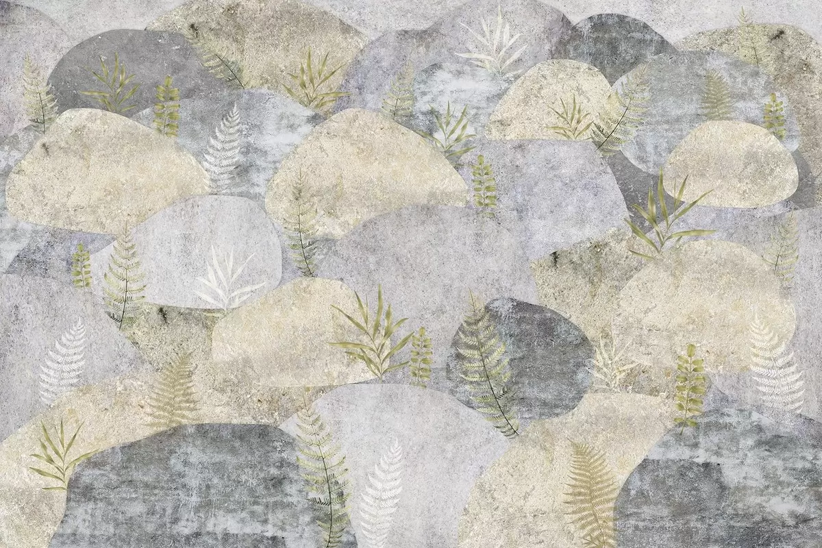 Fotomurales Piedras con plantas, helecho, nórdico, estilo rústico, colores gris y arena Nr. w04064