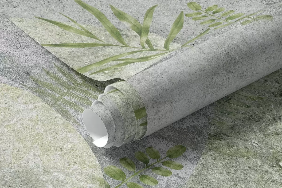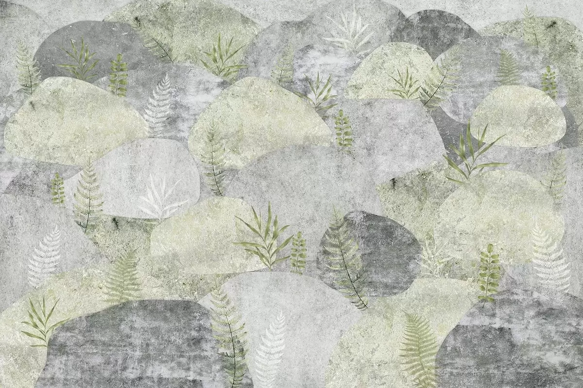 Fotomurales Piedras con plantas, helecho, nórdico, estilo rústico, colores gris y verde Nr. w04064v2