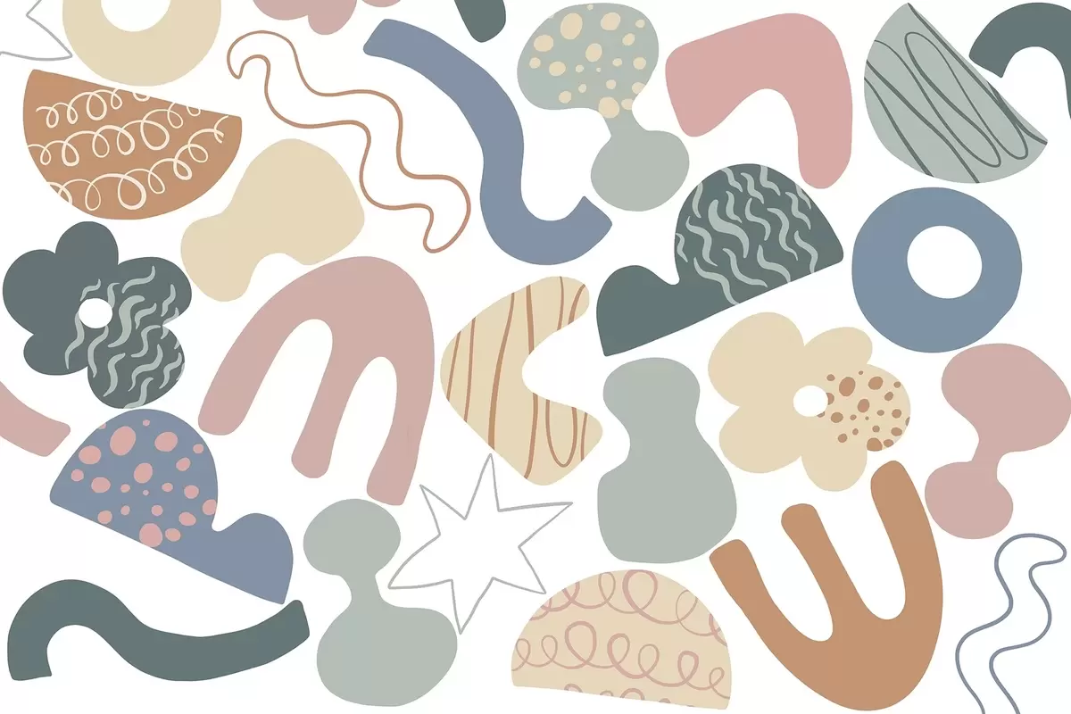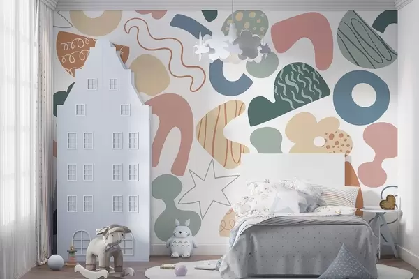 Fotomurales Figuras geométricas con garabatos dibujo, juvenil, verde, rosa, azul Nr. w04068v2