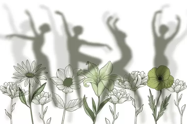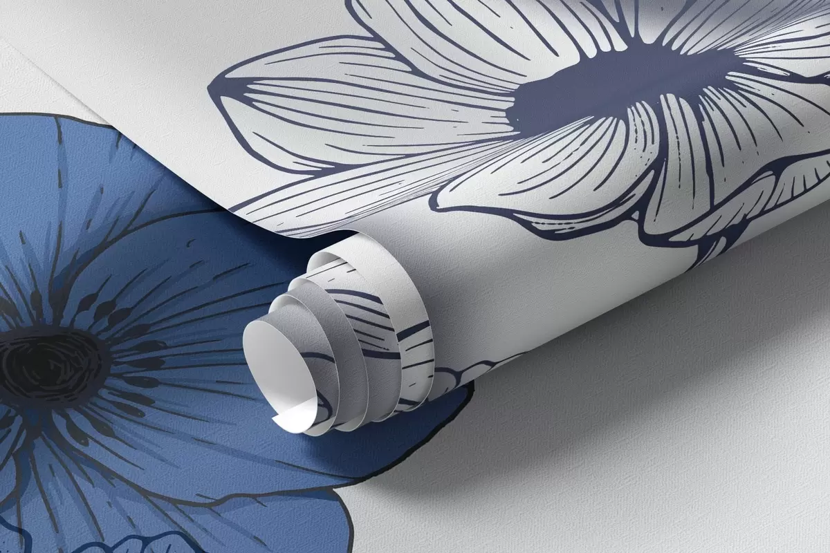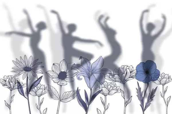 Fotomurales Siluetas de bailarinas, flores rústicas, arte lineal, colores azules Nr. w04069v3