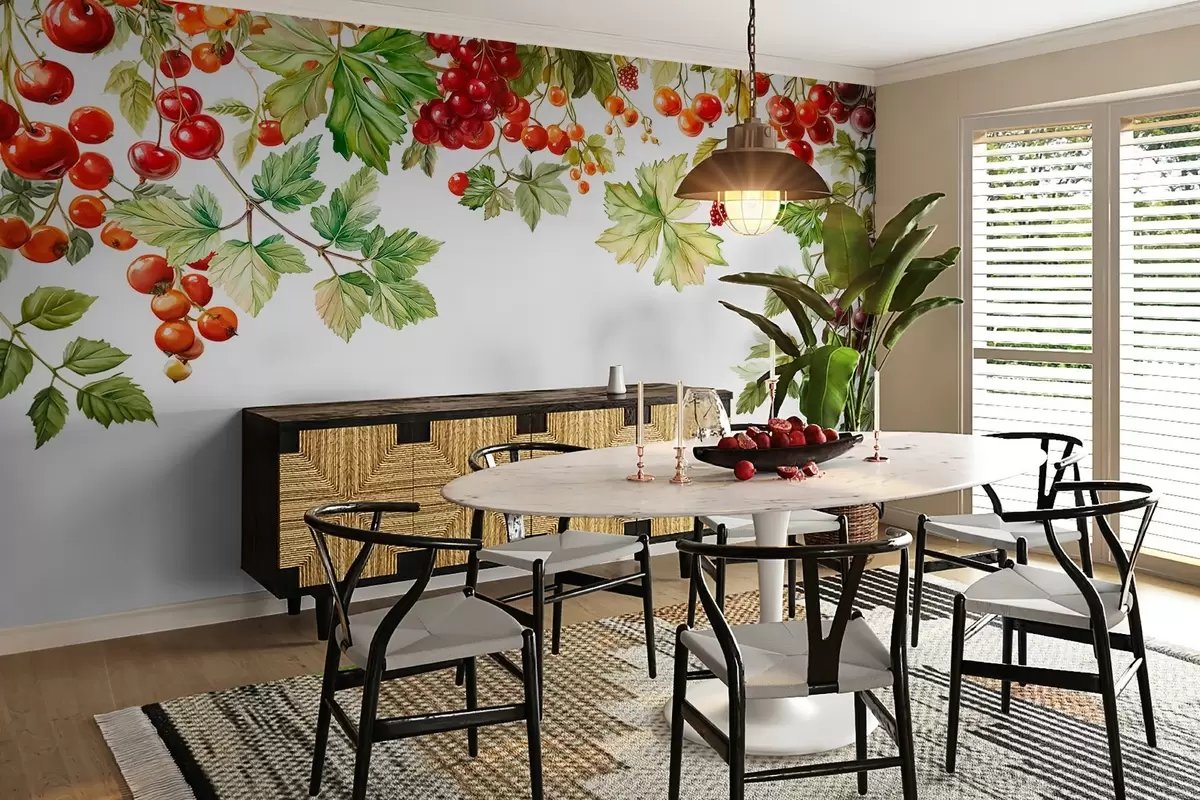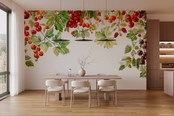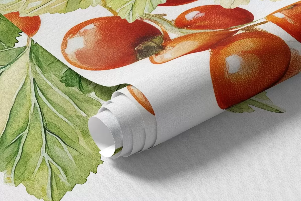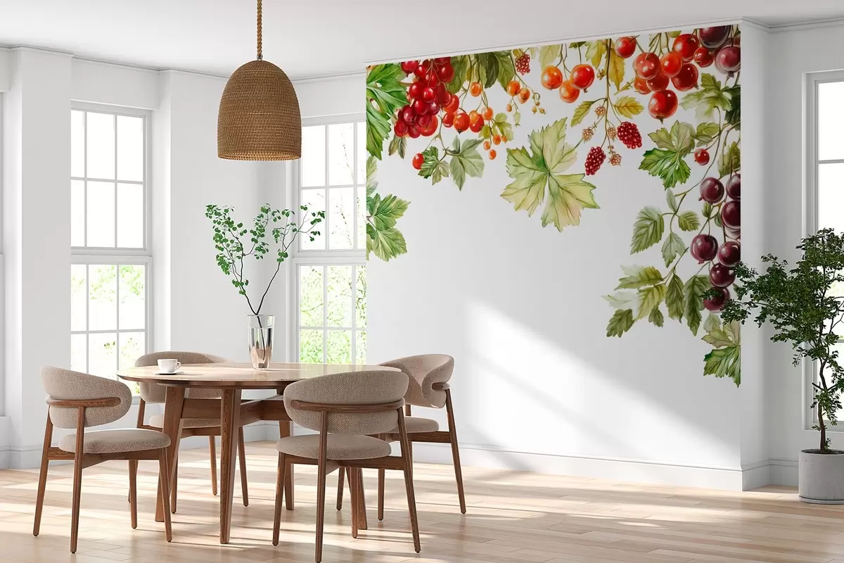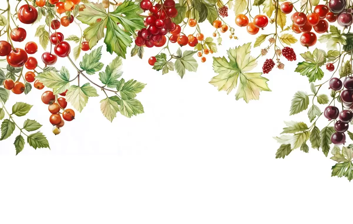 Fotomurales racimos de grosellas colgando de la parte superior en estilo acuarela sobre fondo blanco Nr. w04073
