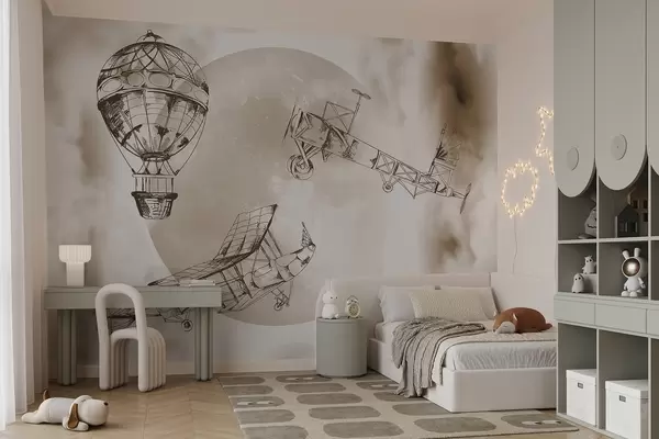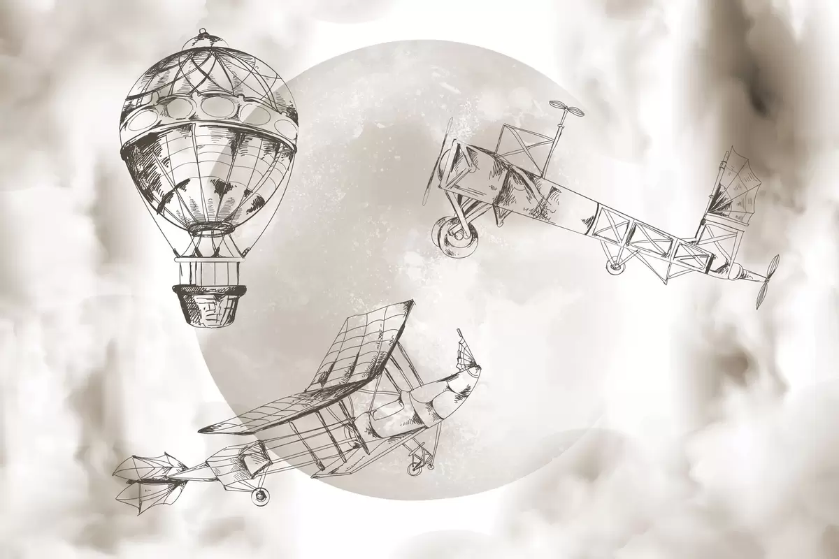 Fotomurales Aviones retro sobre el fondo de la luna y las nubes Nr. w04085v1