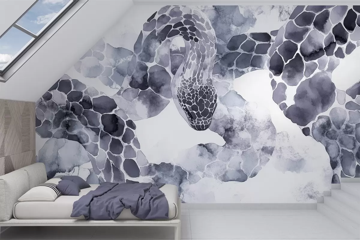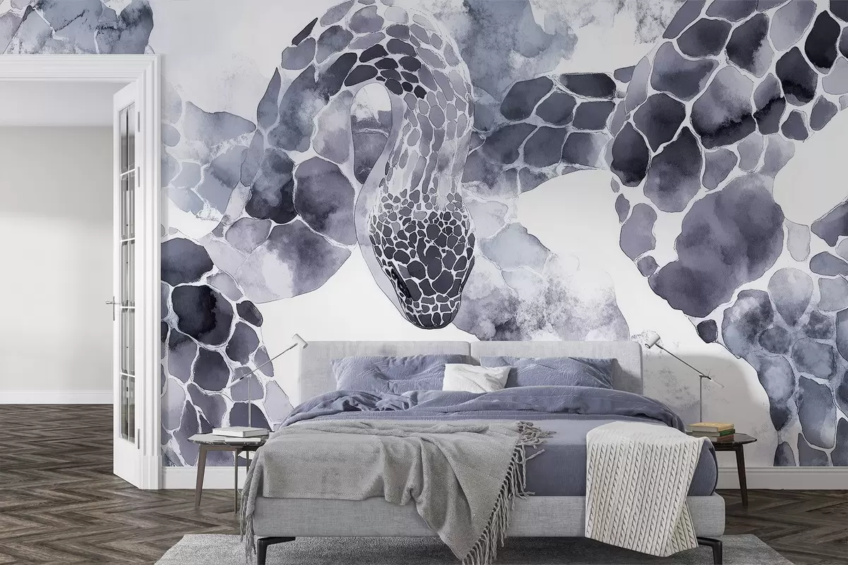 Fotomurales Silueta de serpiente, estilo acuarela, colores azules Nr. w04113