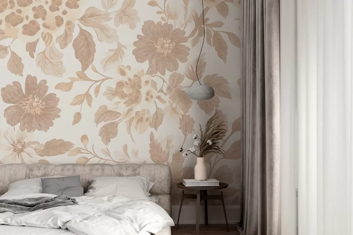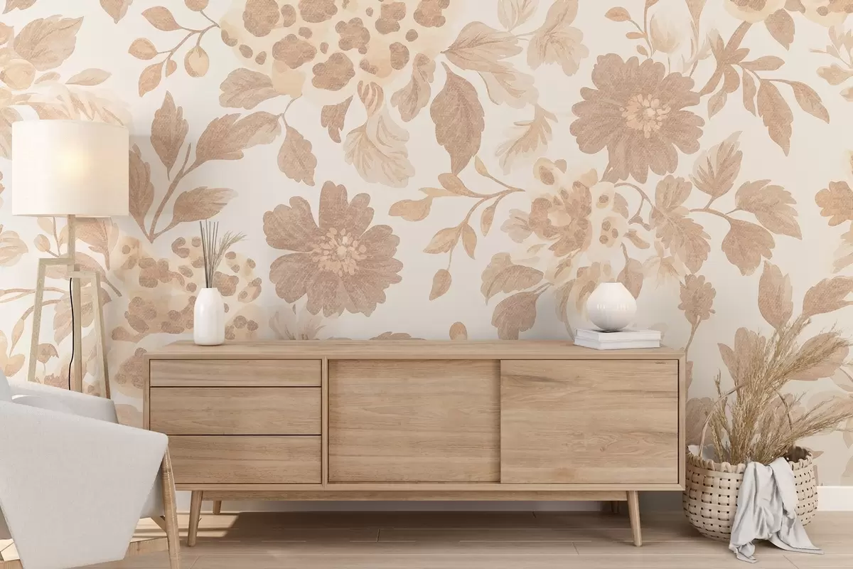Fotomurales Flores estilo boho con estampado de leopardo, color beige Nr. w04114