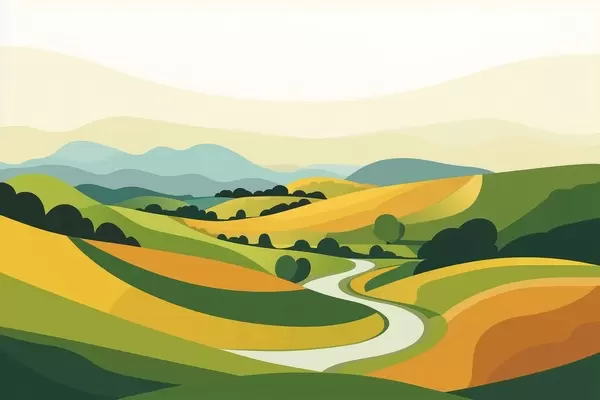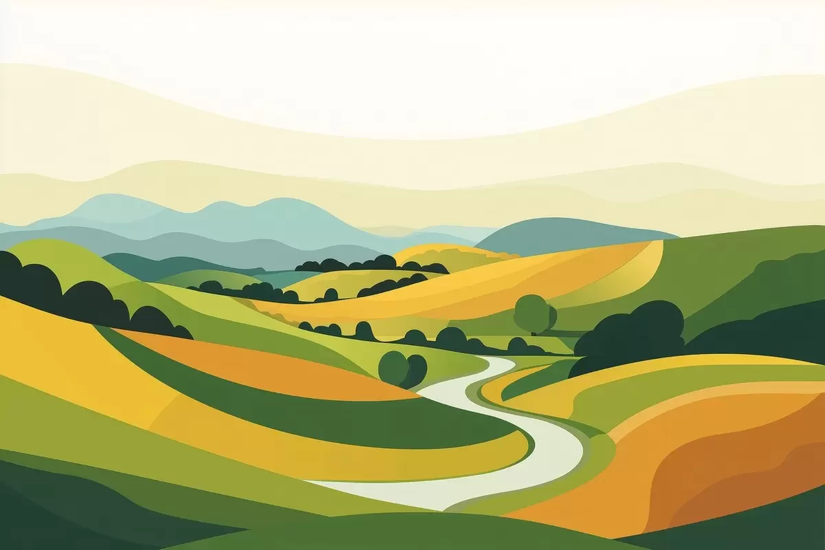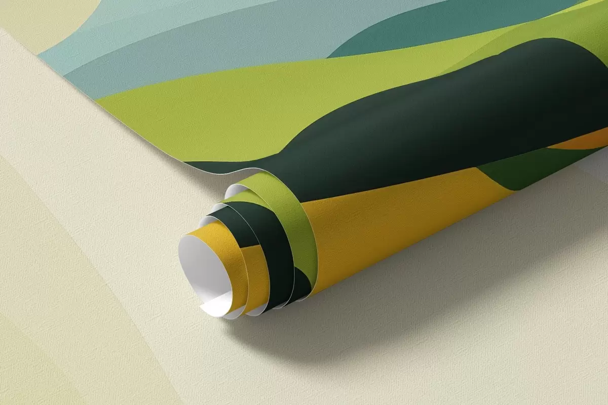Fotomurales Paisaje abstracto con colinas y árboles, colores vivos Nr. w04116