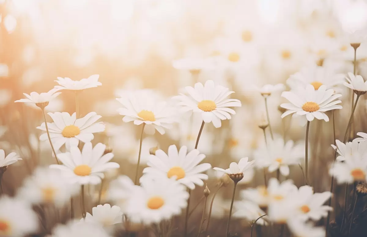 Fotomurales Margaritas silvestres sobre fondo claro con efecto de enfoque suave Nr. w04161
