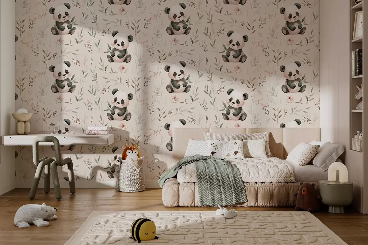 Fotomurales simpáticos bebés pandas entre las plantas Nr. w04170