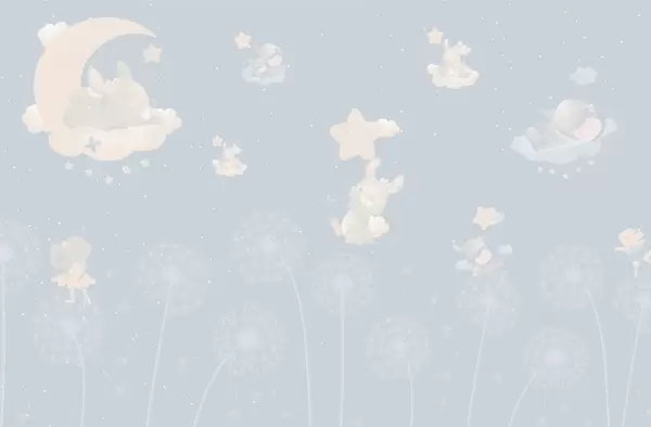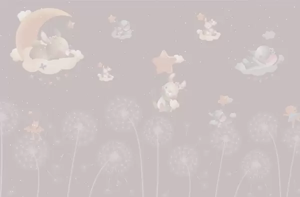Fotomurales Noche de cuento de hadas con conejo y dientes de león sobre fondo rosa Nr. w04195v2