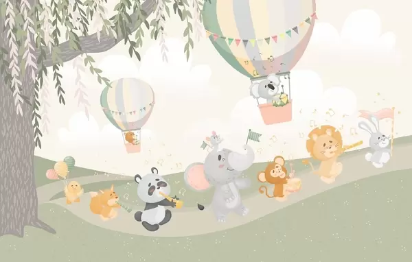 Fotomurales Paisaje con animales tocando instrumentos musicales Nr. w04200