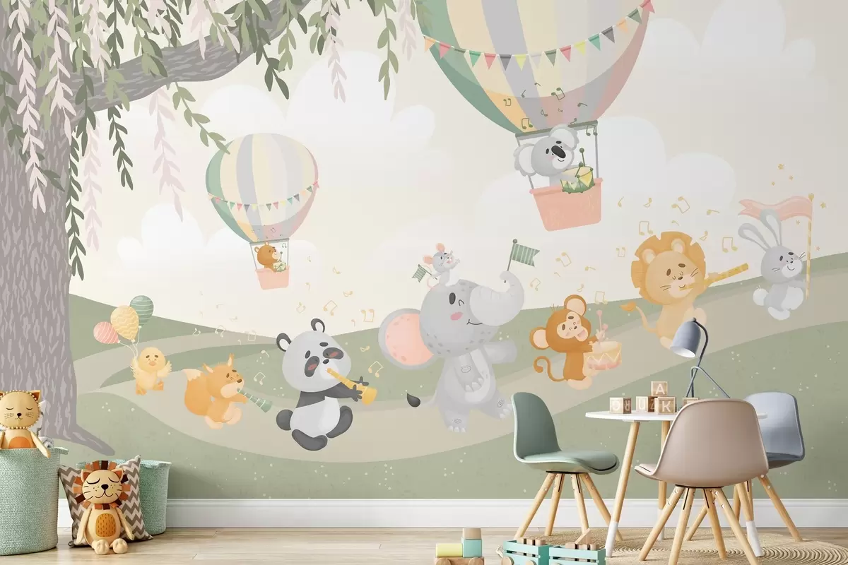 Fotomurales Paisaje con animales tocando instrumentos musicales Nr. w04200v1