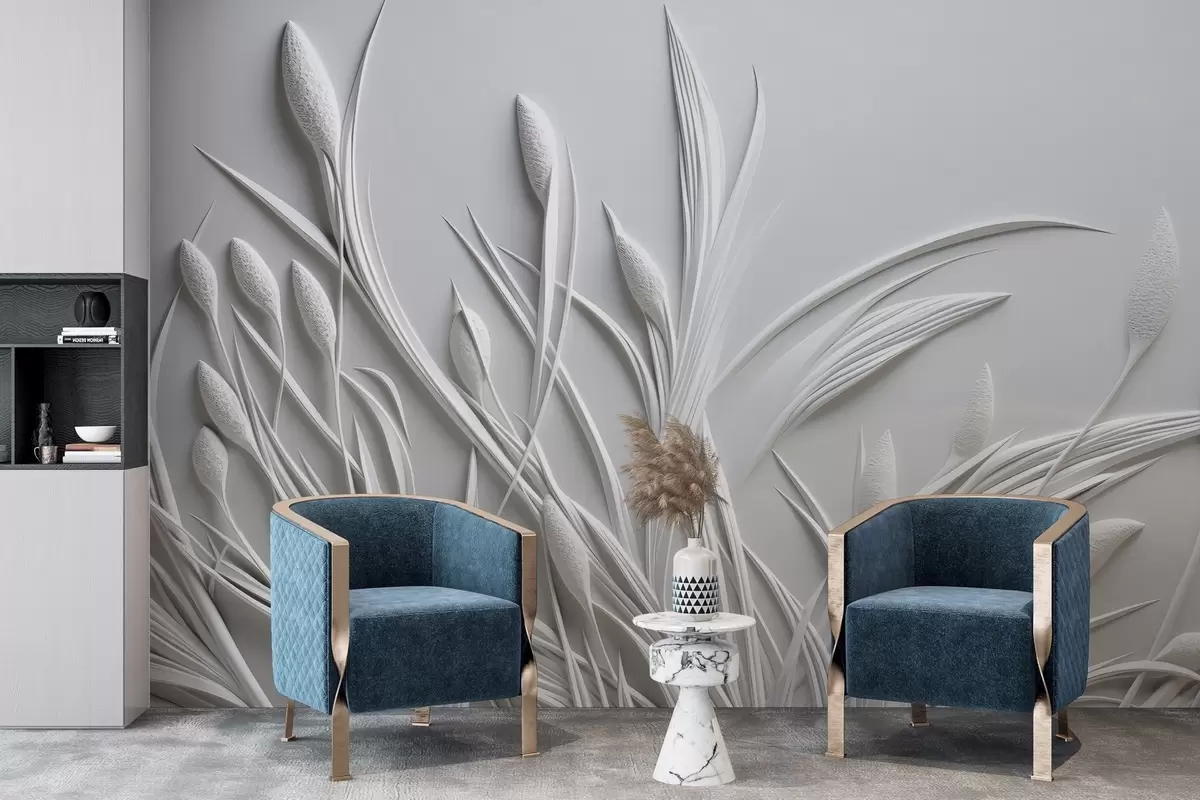 murales de pared Bajorrelieve con delicadas hojas y pámpanos w04247