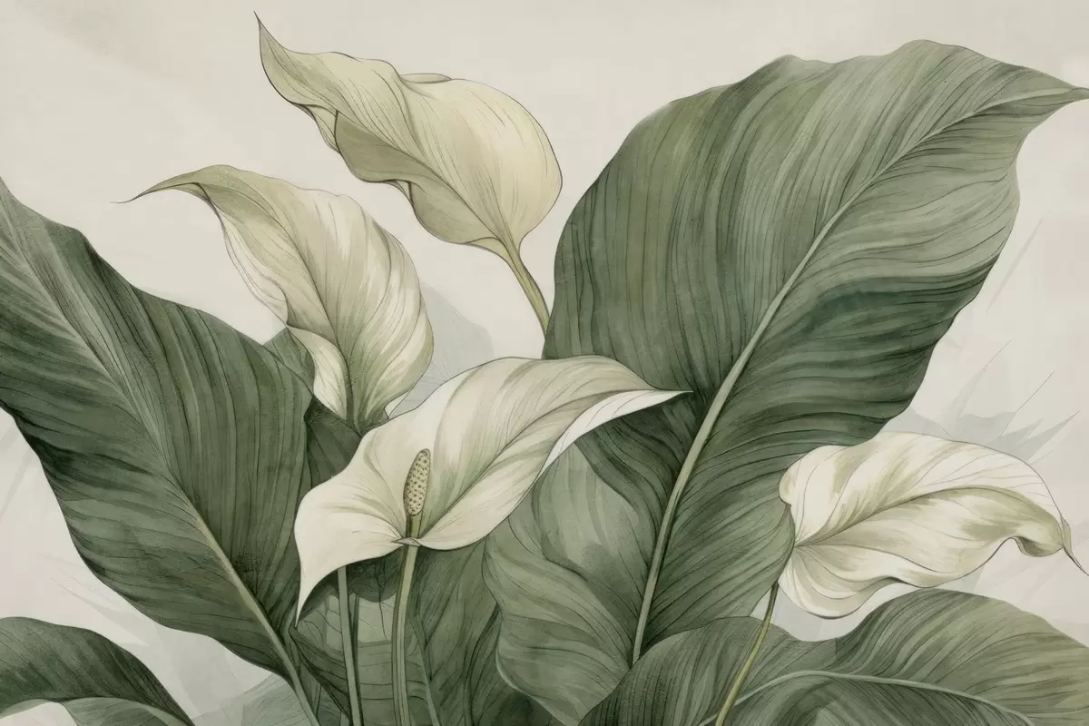 Fotomurales Primer plano de spathiphyllum en flor con hojas grandes Nr. w04263