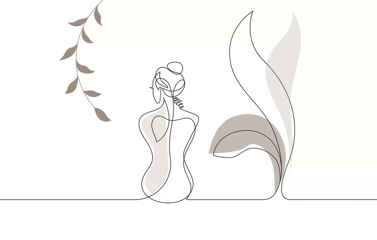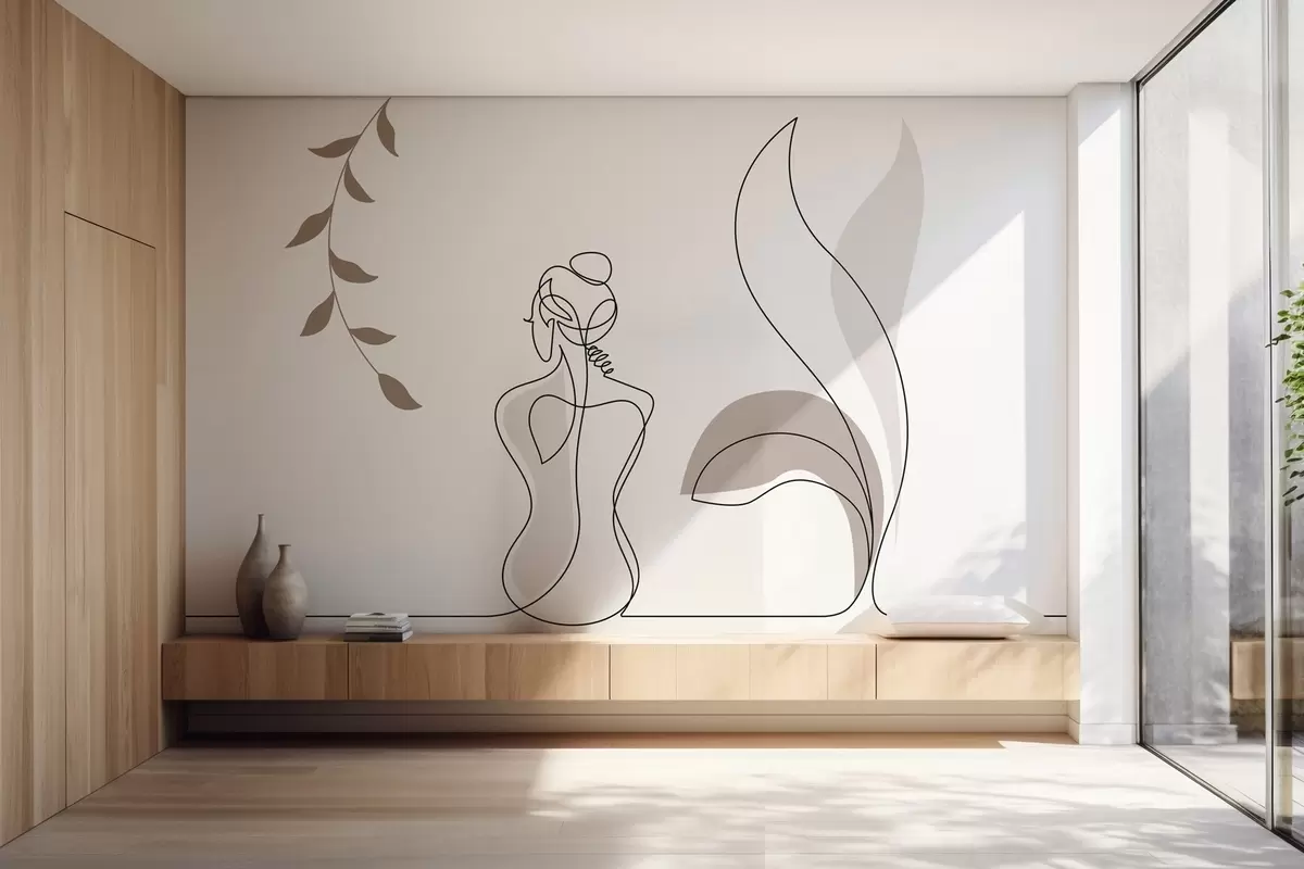 Fotomurales silueta lineal de una mujer y hojas Nr. w04303